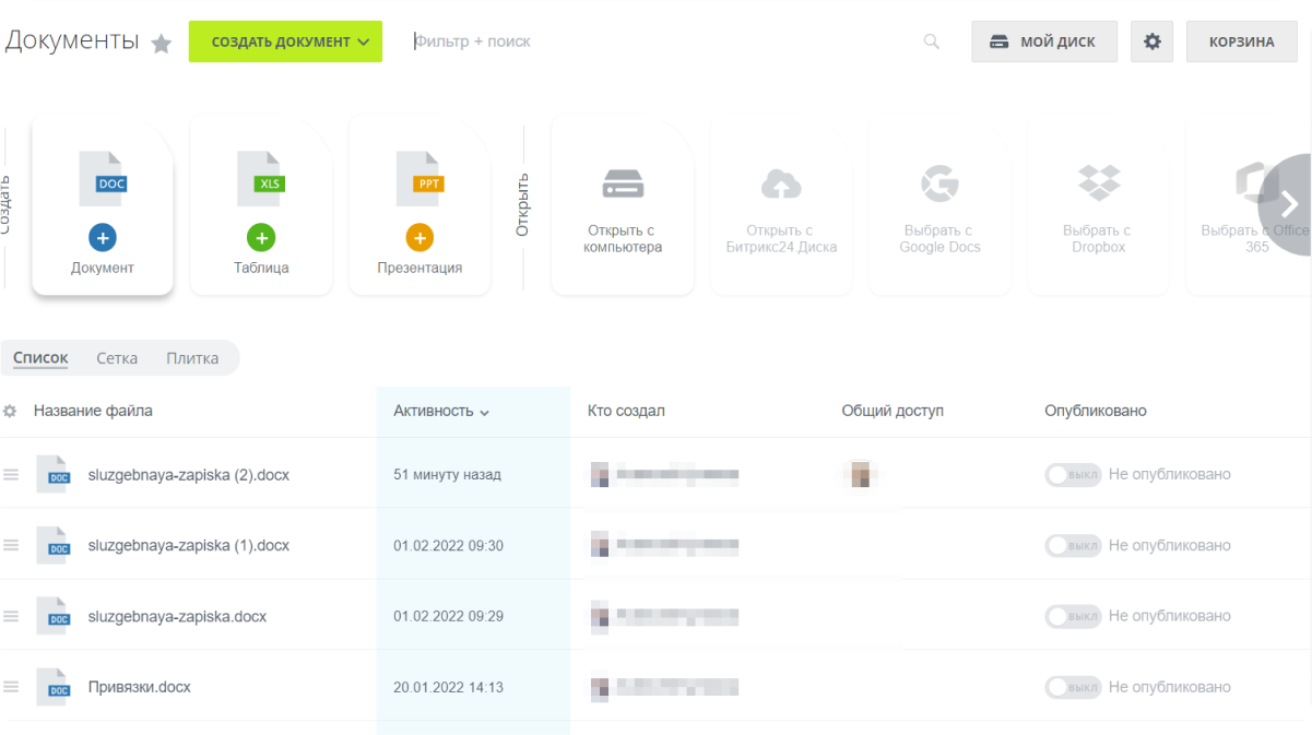Работа с документами полностью перенесена на корпоративный портал «Битрикс24». Это позволило взаимодействовать с файлами напрямую из задач и групп, не беспокоясь, что файлы могут редактировать посторонние люди.